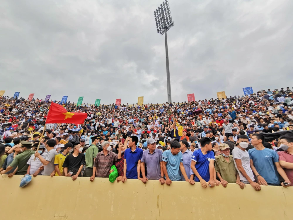 Các CĐV ngồi chật kín sân Thiên Trường. |