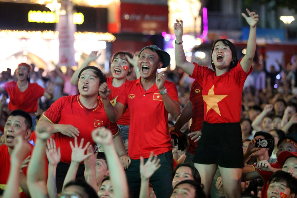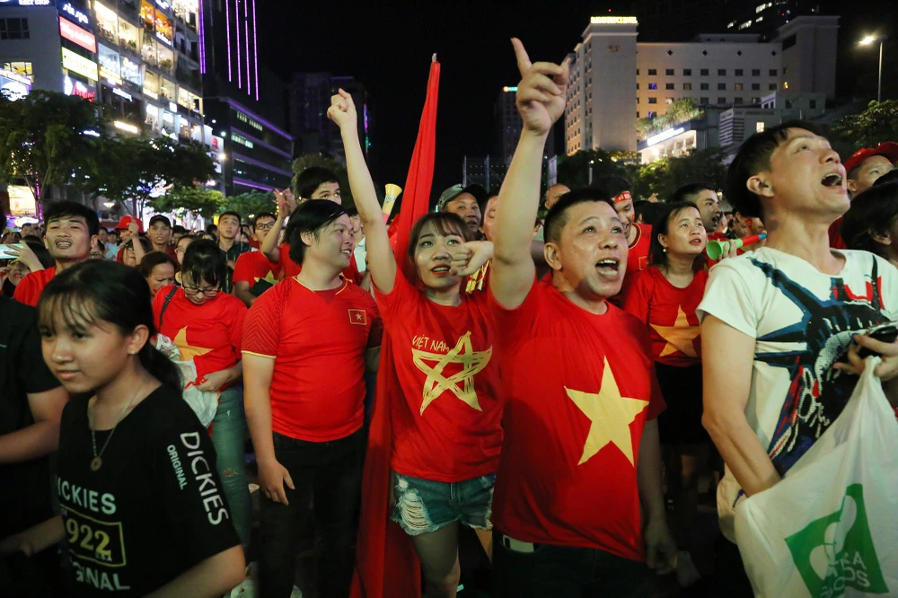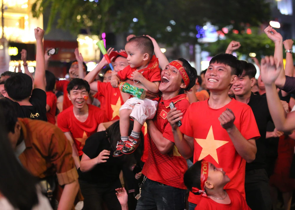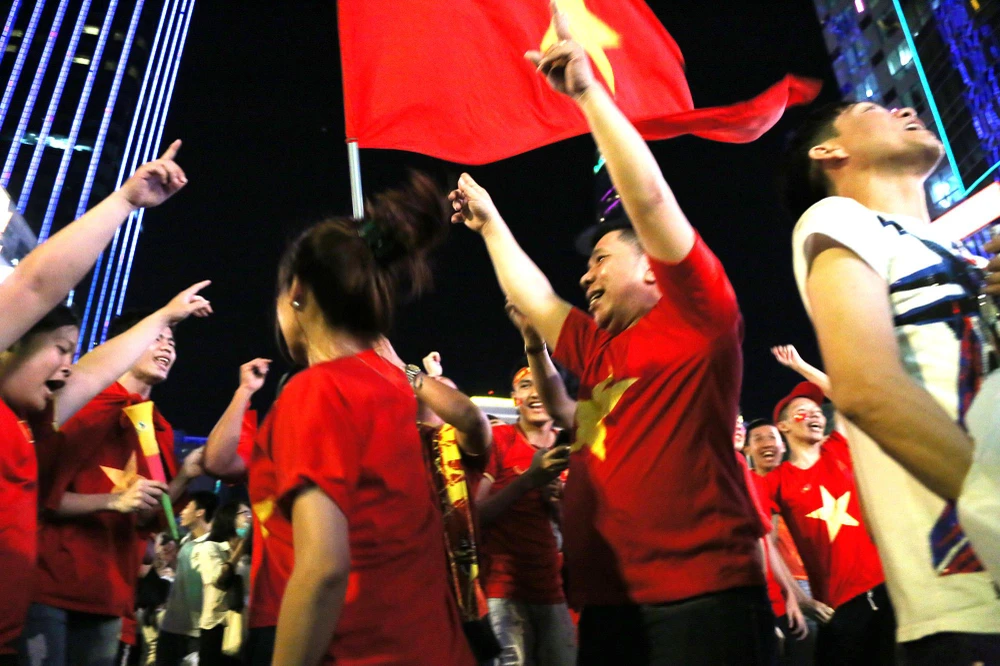 Không khí ăn mừng chiến thắng vốn đã quen thuộc mỗi khi đội tuyển VN thi đấu.