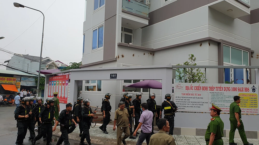 Công an ập vào khám xét một chi nhánh của Công ty Alibaba trên địa bàn quận Thủ Đức. Ảnh: NT