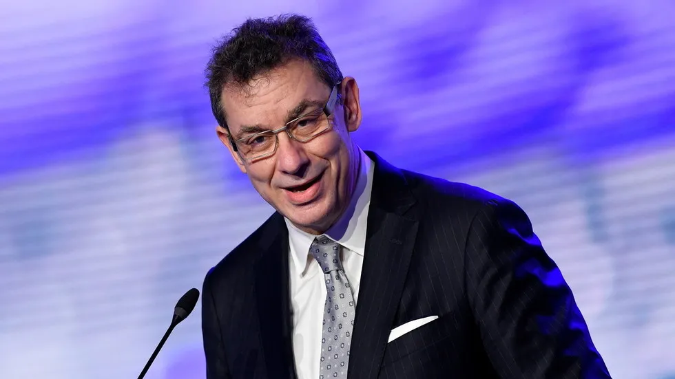 Ông Albert Bourla, Tổng giám đốc điều hành tập đoàn dược phẩm Mỹ Pfizer, phát biểu trong cuộc họp báo ở Puurs, Bỉ, ngày 23-4. Ảnh: REUTERS