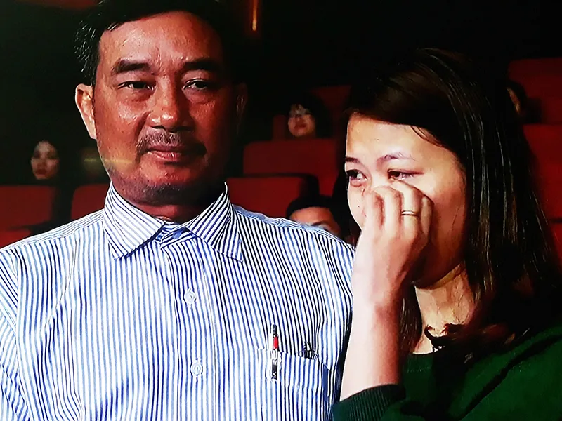 Cuộc hội ngộ ngắn ngủi của ông Tuấn và vợ anh Khiêm diễn ra ngay sau đề nghị của người dẫn chương trình. Người vợ đã khóc và nắm chặt bàn tay ông Tuấn ngay từ lần đầu gặp mặt.