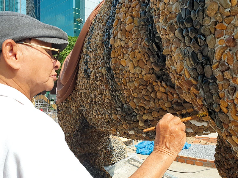 “Đây là ý tưởng của chọn lựa từ nhà thiết kế được UBND TP.HCM phê duyệt. Sau đó dựa trên ý tưởng này, chúng tôi sẽ tạo tác. Trong quá trình tạo hình cho linh vật, nếu thấy những điểm chưa hợp lý thì nghệ nhân sẽ đóng góp để tác phẩm đưa ra trình làng được hoàn chỉnh nhất, đẹp nhất có thể” - ông Tòng cho hay.