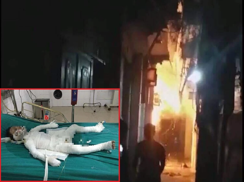 Sự việc khiến ngôi nhà cấp bốn bị thiêu rụi cùng nhiều đồ đạc, năm người trong gia đình bị bỏng được đưa đi cấp cứu gồm: HTL, chị TKS, cháu TGK và cha mẹ chị S. Trong đó, HTL và cháu TGK bị bỏng nặng.