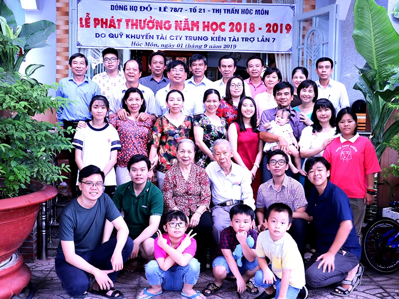 Dòng họ ông Liêm trong buỗi lễ phát thưởng năm học 2018-2019. Ảnh: TRUNG HƯNG