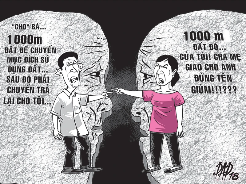 Năm 2016, ông K. nộp đơn khởi kiện bà H. (một người em gái) ra TAND quận Thủ Đức. Theo ông K., ông đã được cấp giấy đỏ (loại đất trồng cây lâu năm) trên phần đất 2.122 m2 mà cha mẹ cho. Vì bà H. làm việc ở Chi cục Thuế quận, sẽ được miễn giảm tiền thuế chuyển mục đích SDĐ nên ông có ký hợp đồng tại phòng công chứng với nội dung cho bà H. 1.000 m2 để bà đứng tên quyền SDĐ, sau đó xin chuyển mục đích sử dụng từ đất trồng cây lâu năm sang đất ở đô thị và chuyển trả lại cho ông.