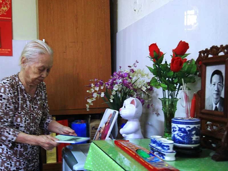 Bà Lê Bích Châu trong căn phòng riêng của mình tại trung tâm, trong phòng có cả bàn thờ chồng. Ảnh: VIẾT THỊNH