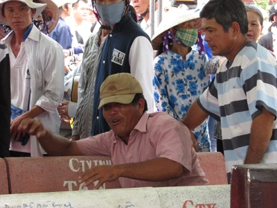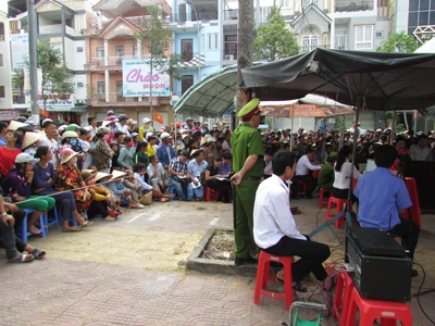 Dù giữa trưa nắng nhưng nhiều người dân vẫn đến theo dõi phiên tòa. Ảnh: N.NAM
