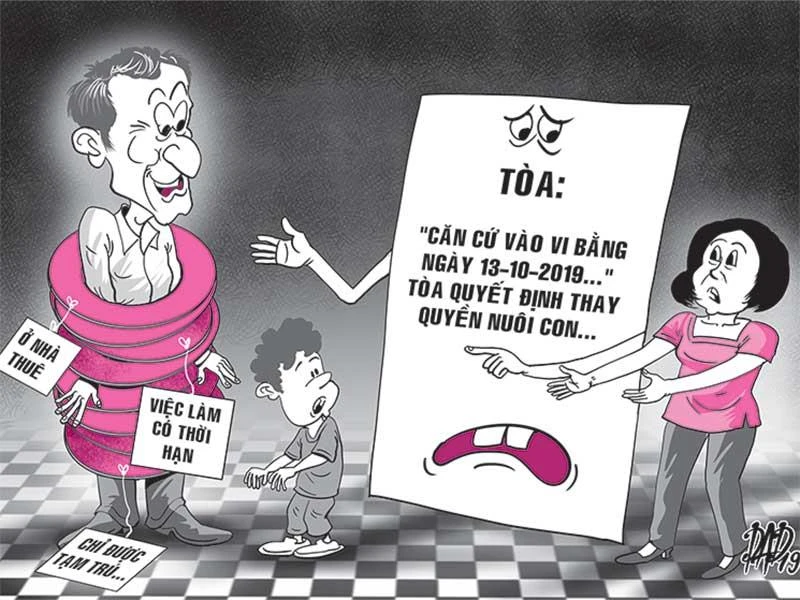 Tuy nhiên, HĐXX không đồng ý với quan điểm của VKS vì xét thẻ tạm trú và giấy phép lao động thì nguyên đơn là người tạm trú dài hạn, có việc làm và thu nhập ổn định. Cuối cùng, HĐXX chấp nhận yêu cầu khởi kiện tuyên giao con chung cho nguyên đơn là ông P. trực tiếp nuôi dưỡng.
