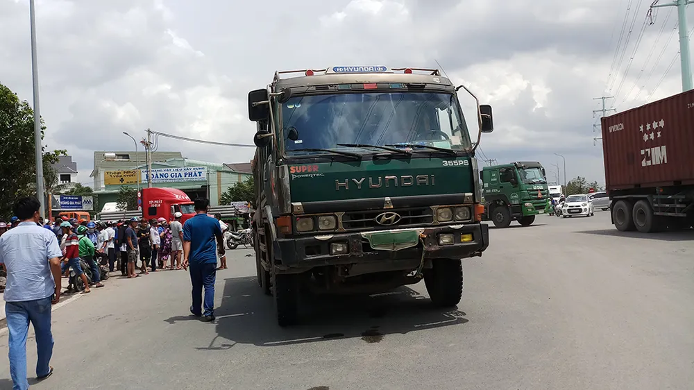 Khi đến vòng xoay Phú Hữu (quận 9) thì xảy ra va chạm với xe ben mang biển số TP.HCM chạy cùng chiều và đang ôm cua rẽ phải để về đường Võ Chí Công.