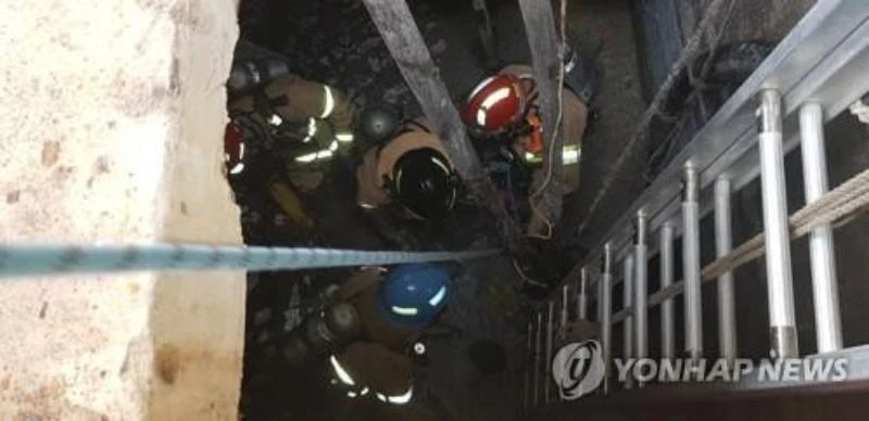 Lực lượng cứu hộ làm việc bên trong bồn chứa ngầm tại nhà máy chế biến hải sản ở Yeongdeok, tỉnh bắc Gyeongsang ngày 10-9-2019. Ảnh: Cơ quan cứu hộ tỉnh bắc Gyeongsang cung cấp