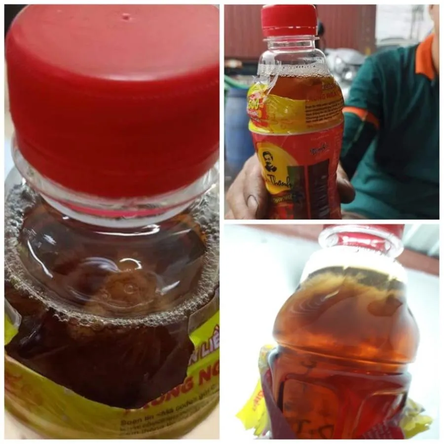 Ông T. cho biết ông là đại lý bán nước giải khát. Trong một lốc gồm sáu chai, khi bán cho khách thì một trong sáu chai có vị chua. Ngay sau đó ông kiểm tra năm chai còn lại và phát hiện một chai có dấu hiệu bị đóng cặn có các chấm đen li ti như lớp màng nấm mốc, bốn chai còn lại không có cặn nhưng thử uống đều có vị chua khác thường.