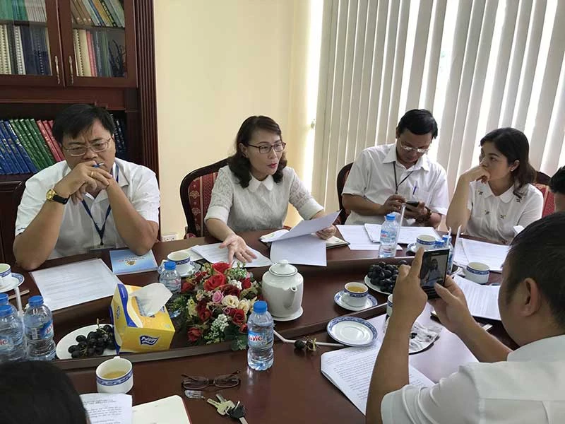 Phó Giám đốc Sở Tư pháp TP.HCM Lê Thị Bình Minh thông tin nhanh với báo chí về vụ việc của chồng bà Oanh. Ảnh: VIỆT HOA