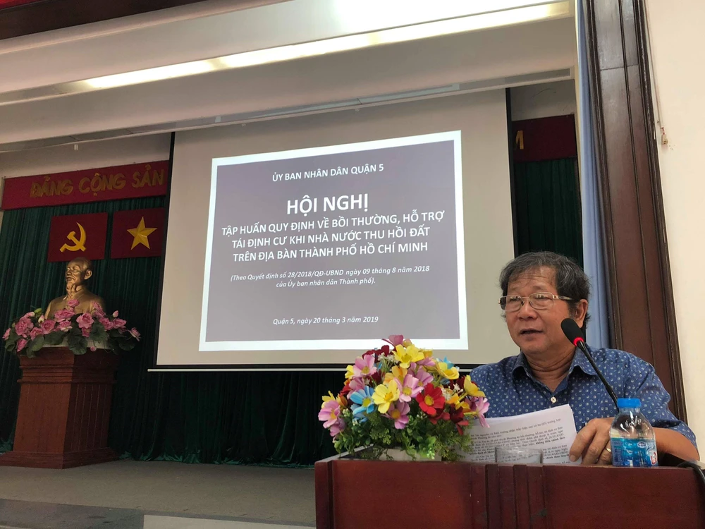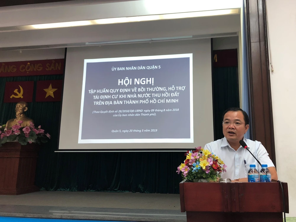 Sáng 20-3, UBND quận 5 (TP.HCM) tổ chức hội nghị tập huấn quy định về bồi thường, hỗ trợ tái định cư khi nhà nước thu hồi đất trên địa bàn TP.HCM theo quyết định số 28/2018 của UBND TP.HCM.