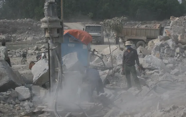 Mỏ đá hoạt động gần các khu dân cư luôn khiến người dân bất an. Ảnh: LÊ PHI.