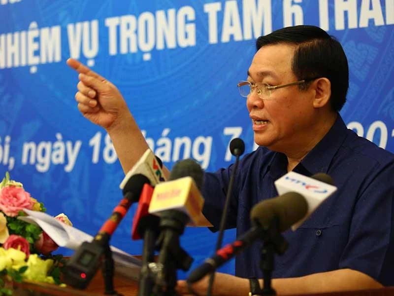 Phó Thủ tướng Vương Đình Huệ phát biểu tại hội nghị sơ kết công tác sáu tháng đầu năm 2019 và triển khai nhiệm vụ trọng tâm sáu tháng cuối năm của Bộ KH&ĐT, ngày 18-7. Ảnh: CHÂN LUẬN