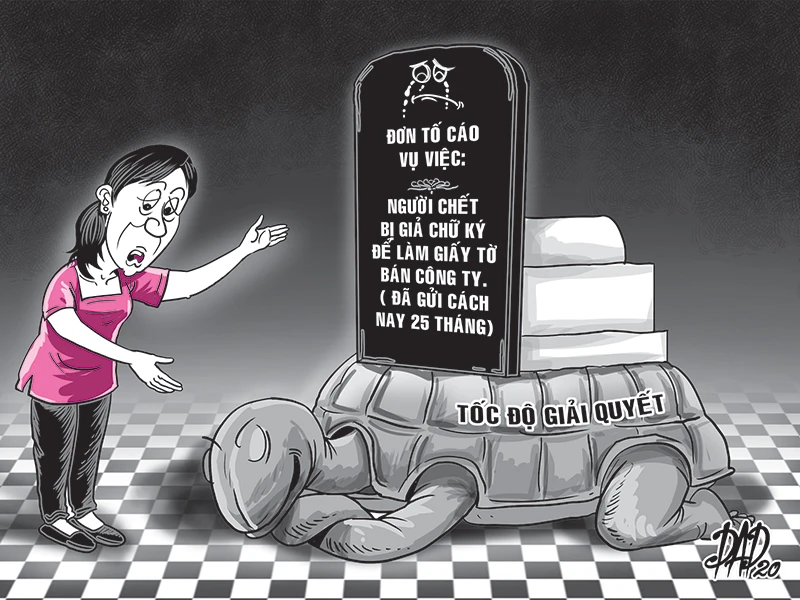 Ngày 17-2, bà Nhan Thị Hữu (ngụ huyện Đức Hòa, Long An) cho biết đã sáu lần gửi đơn tố giác tội phạm liên quan đến vụ người đã chết vẫn bán công ty nhưng đã 25 tháng chưa nhận được phản hồi nào của Công an huyện Đức Hòa.