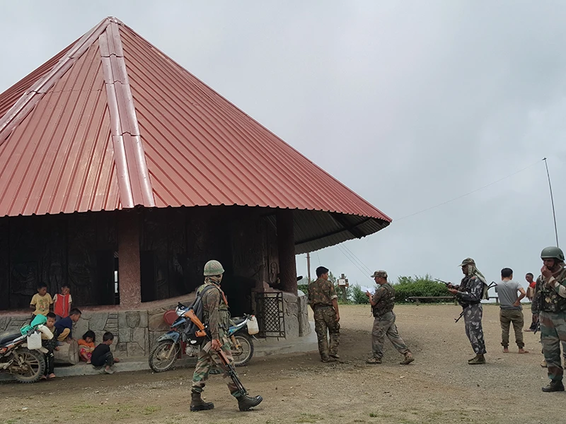 Nhà của vua lúc nào cũng có những tốp quân đội của hai nước túc trực. Cửa nhà chia hai ranh giới, lính hai nước ngồi hai bên canh chừng lãnh thổ. Tuy nhiên, không giống biên giới Ấn Độ-Pakistan đằng đằng sát khí, “tình hình bang giao” tại cung điện rất êm đềm, hòa thuận. Quân đội Ấn Độ rất hoành tráng với quân phục, súng ống, xe nhà binh và những trạm quân sự dọc theo đường biên giới; còn mấy anh lính Myanmar ốm yếu, mặc xà rông truyền thống, mang dép Lào, chạy xe máy giắt theo bình xăng đổ dọc đường, tối tối xin ngủ nhờ nhà của vua. Mấy anh lính cho hay họ mua xăng từ Myanmar vì giá xăng bên đó rẻ hơn bên này thuộc Ấn.