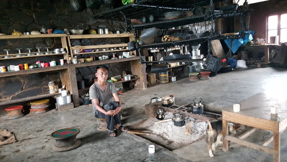 Hôm sau, tôi quay lại nhà của vua làng Mon. Biết thân biết phận, lần này gặp vua tôi cười toe, hết sức nhũn nhặn. Vị vua hết sức tốt bụng và hiền hòa, mời vào bếp uống trà rồi cho phép tôi tham quan khắp “cung điện”.
