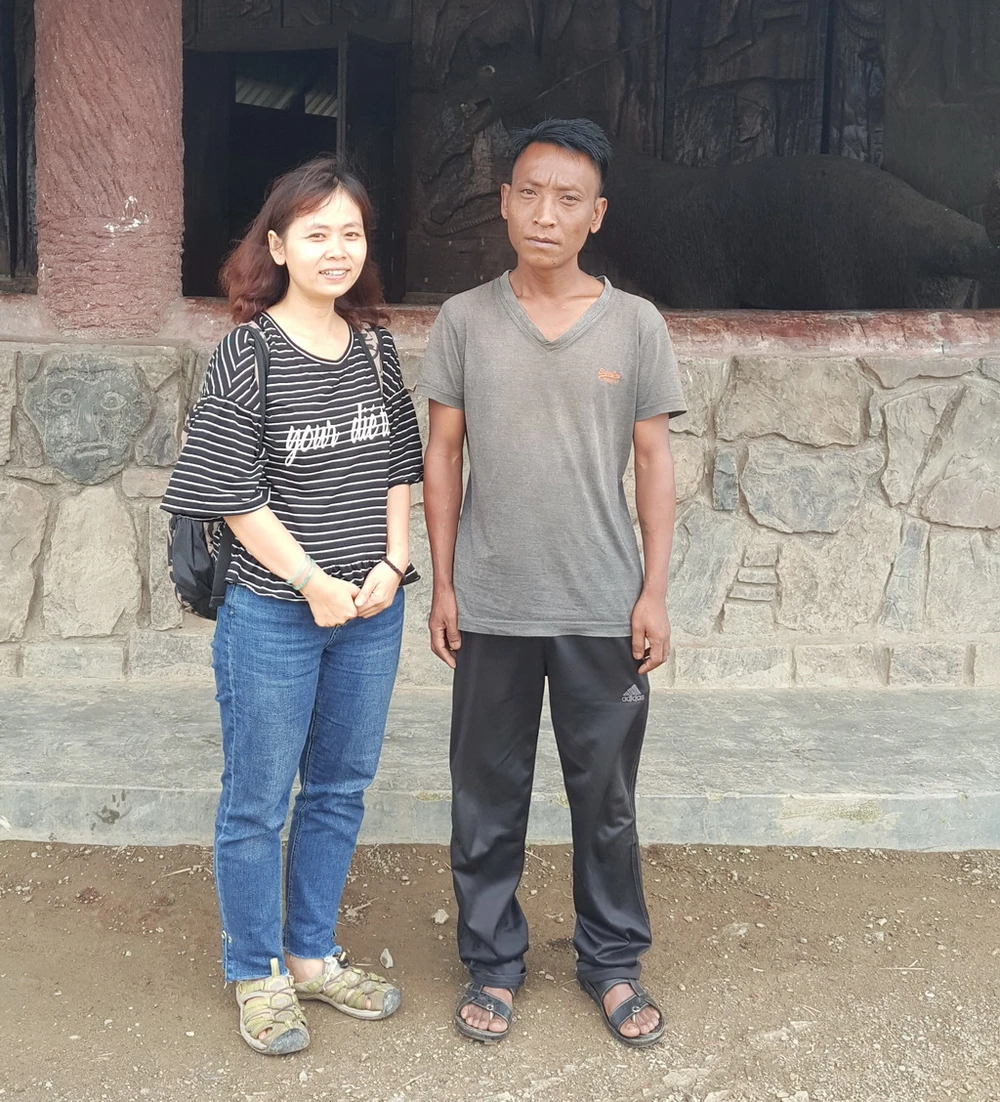 Lần đầu tác giả (đứng) chạm mặt nhà vua của bộ tộc Konyak mà không biết…Ảnh: TN