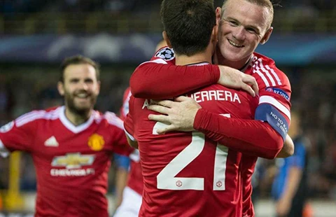 Rooney mừng hat trick cùng việc MU trở lại với Champions League. Ảnh: GETTY IMAGES