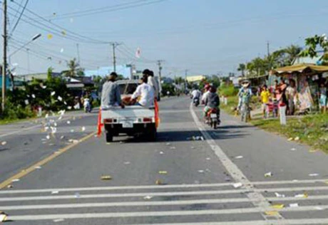 Rải vàng mã trên đường làm tăng nguy cơ tai nạn giao thông. Ảnh: Internet