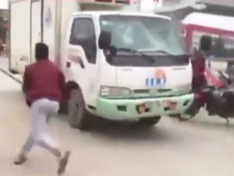 Một trường hợp đập phá xe gây tai nạn. Ảnh cắt từ clip