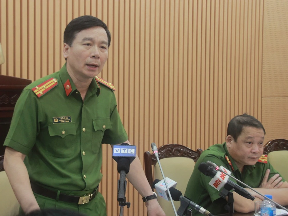 Thượng tá Nguyễn Bình, Trưởng PC45 Hà Nội, cung cấp thông tin cho báo chí. Ảnh: TUYẾN PHAN