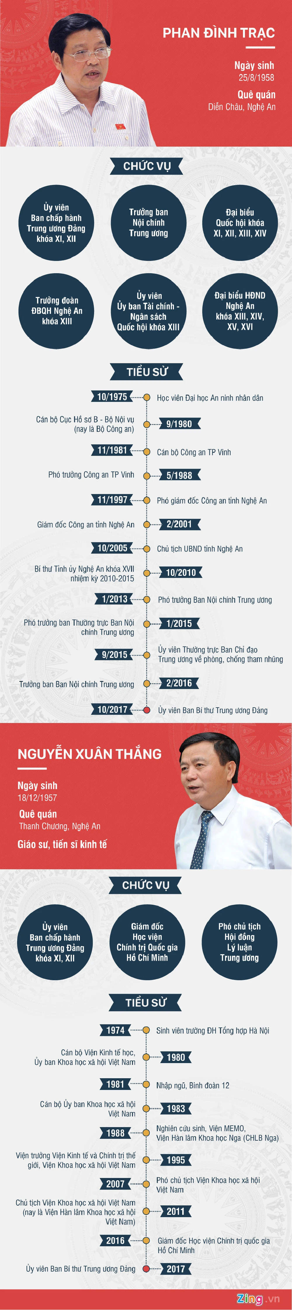 Cùng quê Nghệ An, ông Phan Đình Trạc hiện là trưởng Ban Nội chính Trung ương, còn ông Nguyễn Xuân Thắng là giám đốc Học viện Chính trị quốc gia Hồ Chí Minh.