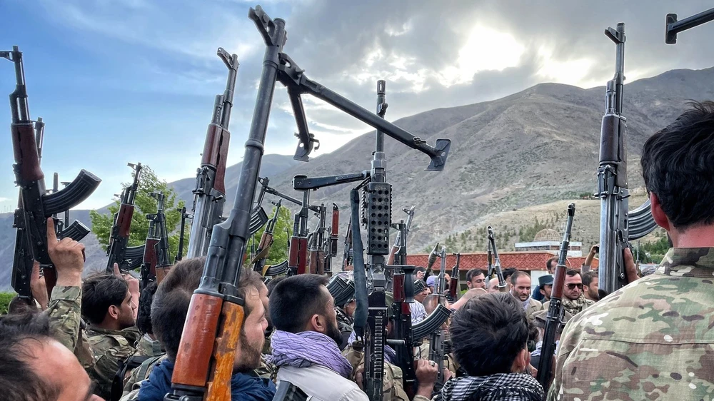 Các tay súng thuộc phe kháng chiến ở thung lũng Panjshir hồi tháng 7. Ảnh: SKY NEWS