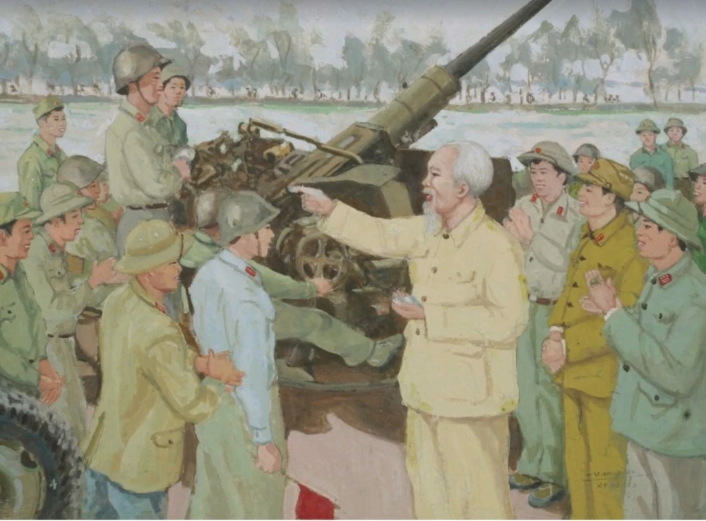 Bác Hồ thăm trận địa pháo cao xạ tại Hồ Trúc Bạch (1980).