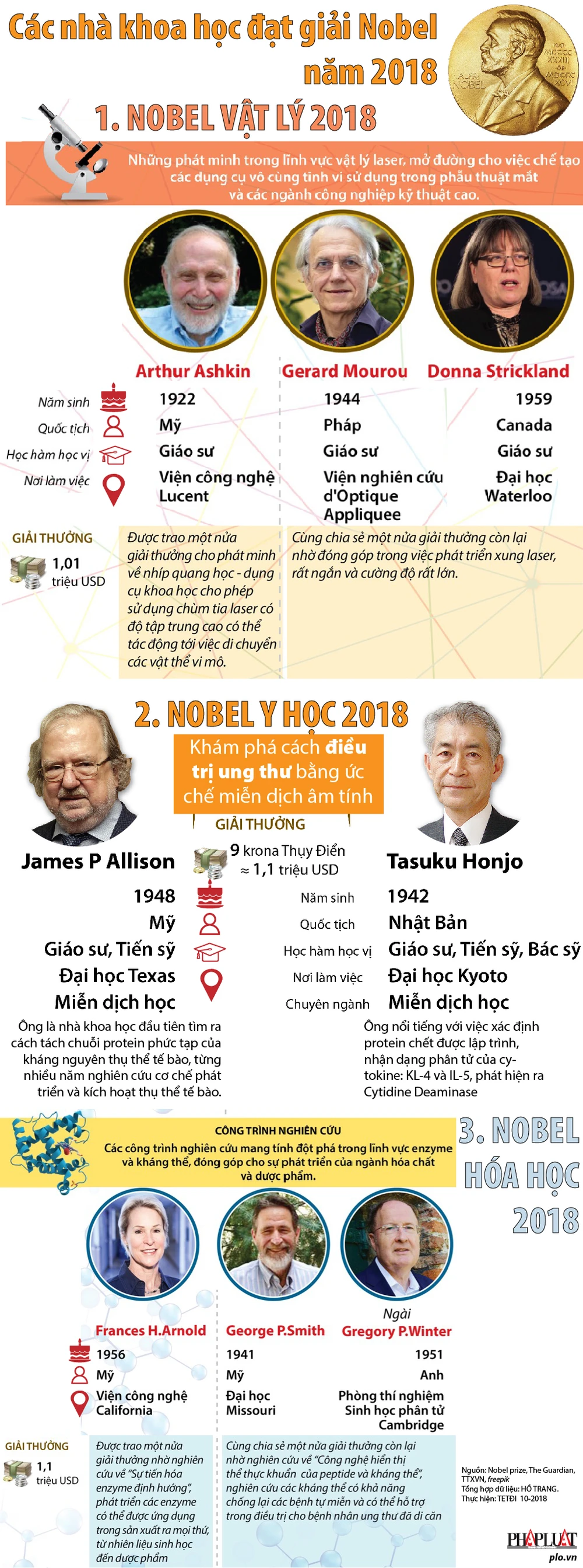 Chân dung các nhà khoa học đạt giải Nobel năm 2018