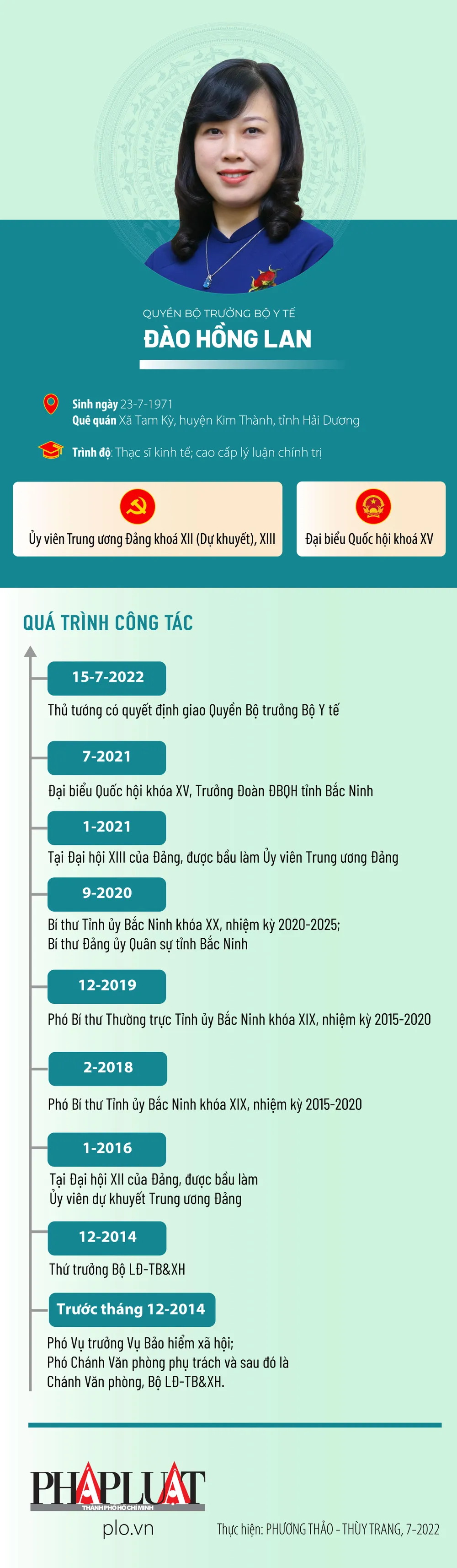 (PLO)-  Ngày 15-7, Thủ tướng có quyết định giao Quyền Bộ trưởng Bộ Y tế cho bà Đào Hồng Lan.