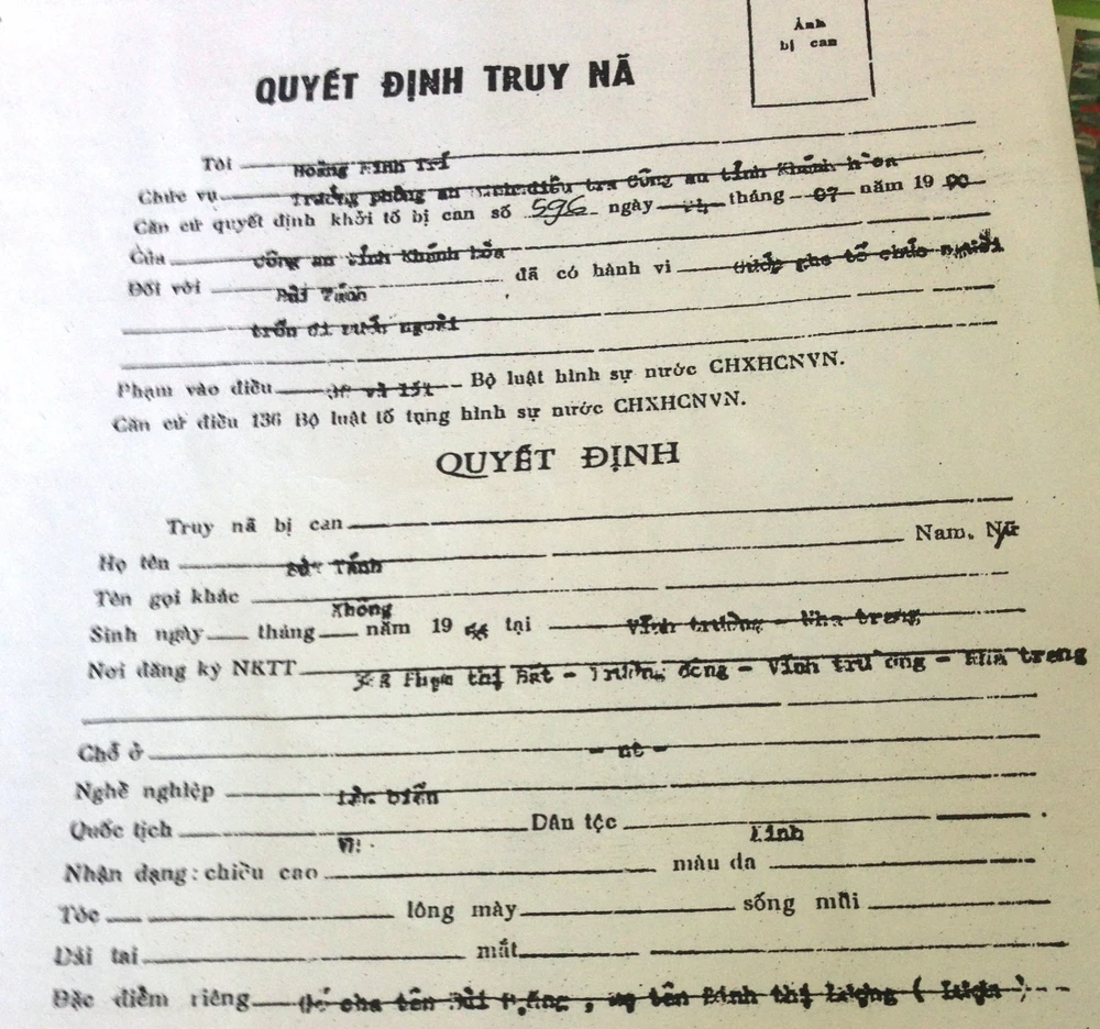 Quyết định truy nã đối tượng Bùi Văn Tánh