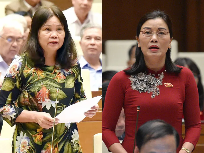 Đại biểu Trần Thị Dung (trái, Điện Biên) và đại biểu Nguyễn Thị Xuân (Đắk Lắk) phát biểu tại phiên thảo luận. Ảnh: VGP
