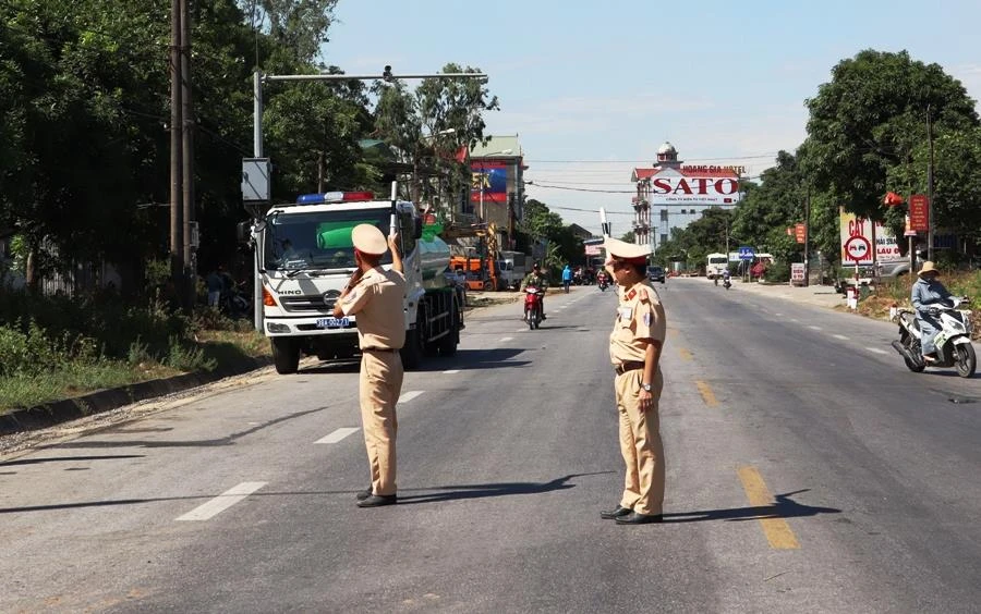 CSGT chốt chặn trên quốc lộ 1A (đoạn qua thị trấn Xuân An, huyện Nghi Xuân).