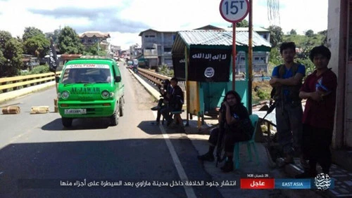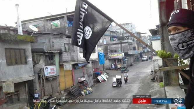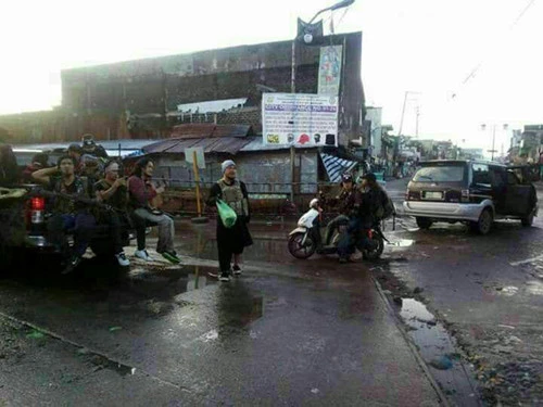 Cờ IS xuất hiện tại Marawi. Ảnh: TWITTER