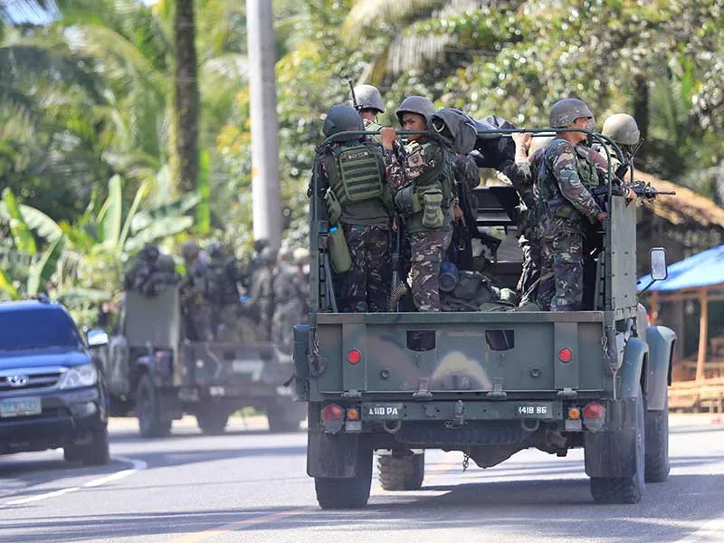Xe quân sự của lực lượng quân đội Philippines trên đường tiến vào TP Marawi để chiến đấu chống lại nhóm khủng bố. Ảnh: REUTERS