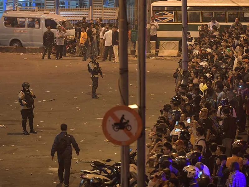 Hai vụ nổ bom liên tiếp xảy ra tại trạm xe buýt ở thủ đô Jakarta, Indonesia vào đêm 24-5 đã khiến năm người thiệt mạng và khoảng 10 người khác bị thương. Ảnh: REUTERS