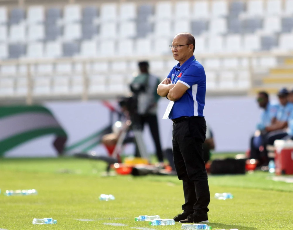 HLV Park Hang-seo bó tay khi các học trò gặp phải đối thủ Iran quá mạnh. Ảnh: ANH HỮU
