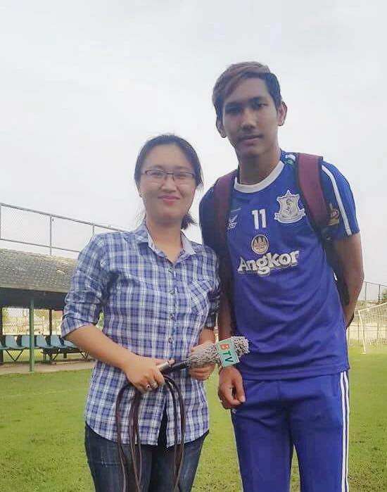 Chan và một BTV của Đài Truyền hình Bình Dương trên sân tập Bình Dương.