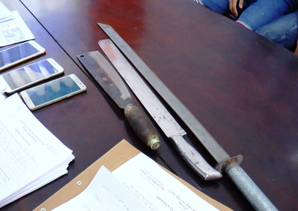 Trong ô tô có 6 thanh niên và phía dưới cốp xe có nhiều hung khí tự chế như dao, mã tấu.