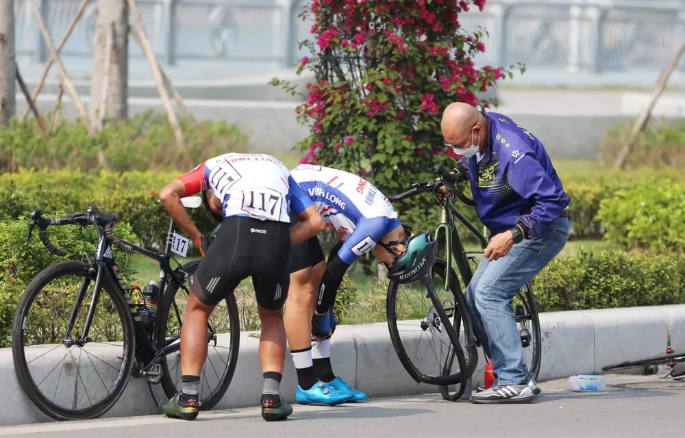 Thời điểm đoàn đua xuất phát chưa đầy 1 km, một tốp khoảng hơn 10 tay đua bất ngờ dính tai nạn, khiến hai tay đua đội Vĩnh Long thiệt hại nặng khi gãy gập sườn xe lẫn cặp bánh carbon. Riêng tay đua Lê Nguyệt Minh, tuy không có thiệt hại về trang thiết bị nhưng “vua nước rút” bị xây xát ở mông và hoàn thành nốt chặng đấu.