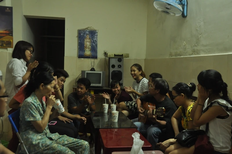 Thời gian giao lưu không nhiều nhưng chúng tôi đã kịp trao nhau những câu chuyện cuộc đời của mỗi người. Gạt đi những vất vả, nhọc nhằn thường ngày trong bóng tối, các cô, các chú nở những nụ cười thật tươi và hát cho chúng tôi nghe những bài hát xứ Huế trữ tình, đằm thắm. Nắm chặt tay cô Loan đang ngồi bên cạnh, Ngọc Ánh chia sẻ: “Đây là một ngày hoạt động từ thiện rất ý nghĩa. Được tận tay chuẩn bị và phát những phần quà nhỏ cho mọi người trong trung tâm là một cảm giác rất vui. Lắng nghe câu chuyện về cô Loan mà nghẹn ngào, thấy còn nhiều mảnh đời bất hạnh quá và mình vẫn còn rất may mắn, vì vậy phải trân trọng hơn những gì mình đang có”.