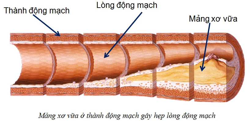 Mảng xơ vữa ở thành động mạch gây hẹp lòng động mạch.
