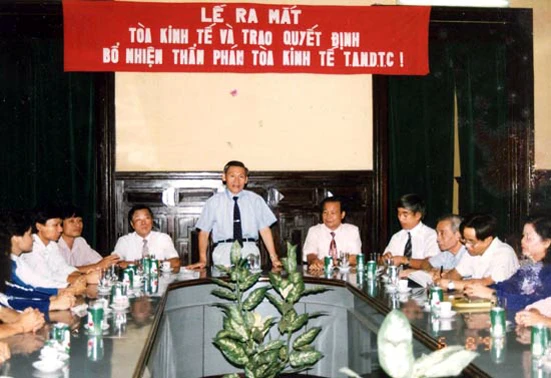 Chánh án TAND Tối cao Phạm Hưng chủ trì lễ ra mắt Tòa Kinh tế TAND Tối cao năm 1994. Ảnh: INTERNET