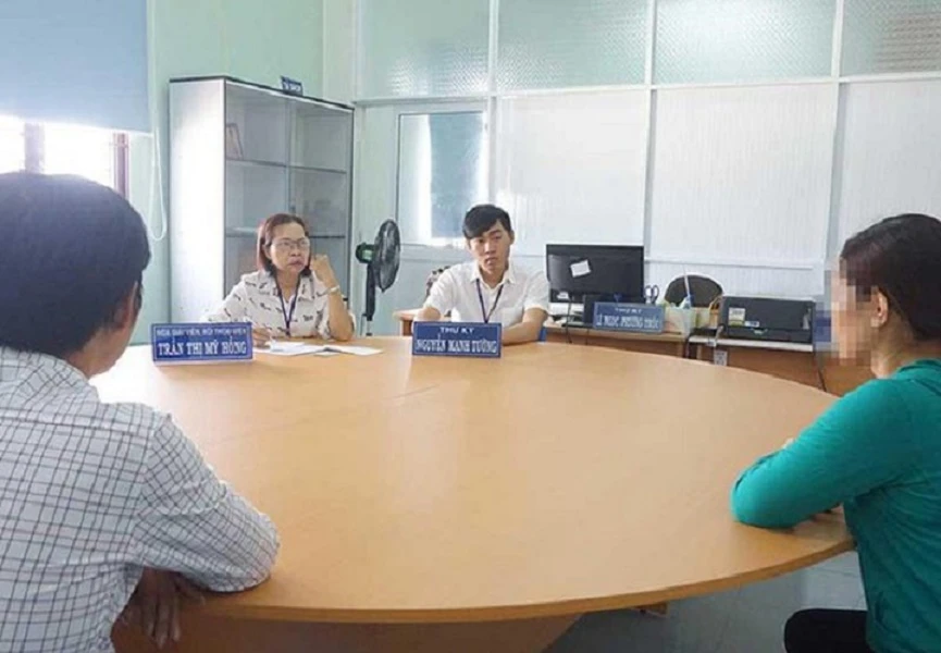Một phiên hoà giải về hôn nhân ở Trung tâm hoà giải đối thoại giai đoạn thí điểm. Ảnh: N.N