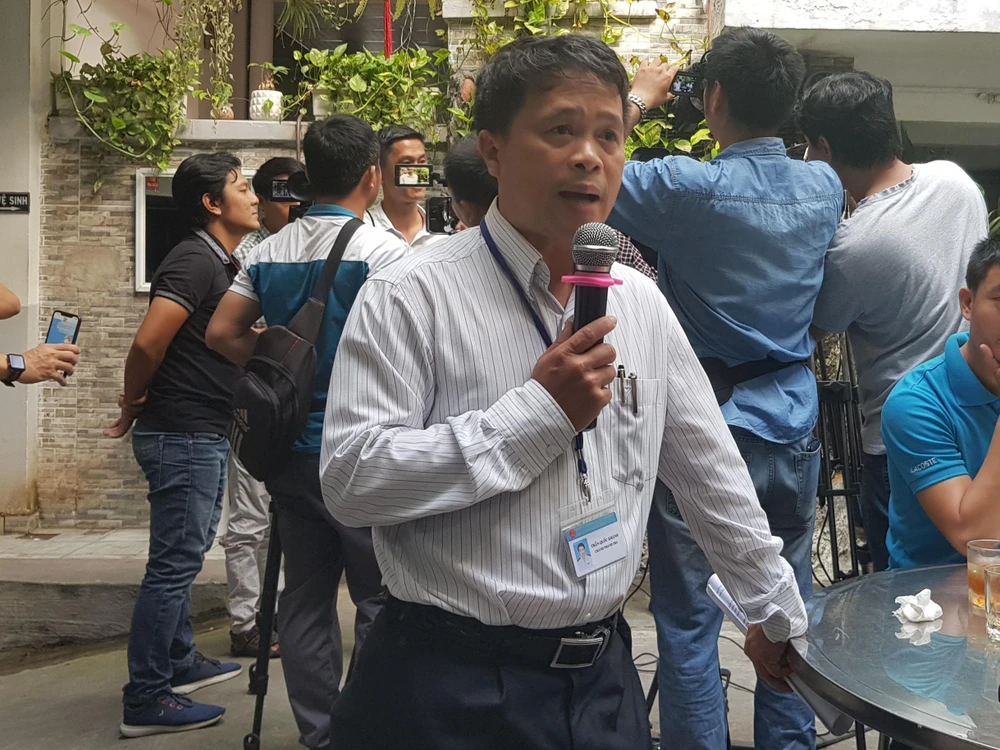 Chánh thanh tra Sở GTVT TP.HCM Trần Quốc Khánh trả lời về sai phạm trong công tác bổ nhiệm, chuyển đổi cán bộ sáng 28-8. Ảnh: KIÊN CƯỜNG