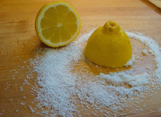 Thớt nhờn có thể làm sạch bằng cách dùng một lát chanh với một ít muối trắng và thêm một hoặc hai thìa cà phê muối cùng chanh vào máy rửa chén sẽ giúp làm sạch dầu mỡ bám trên bề mặt bát đĩa. Chanh còn có tác dụng rất tốt trong việc làm sạch các đồ dùng phòng tắm.