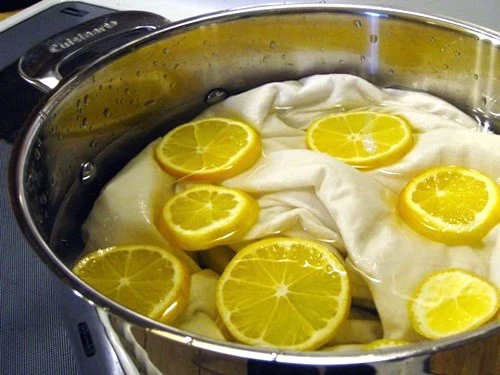 Tẩy màu trên quần áo – Thay vì sử dụng thuốc tẩy trên đồ quần áo, ga trải giường màu trắng thì bạn có thể ngâm chúng trong nước nóng và cho một ít nước cốt chanh vào. Sau khi ngâm và giặt sạch, quần áo cũng như ga trải giường sẽ lại trắng sáng như mới.