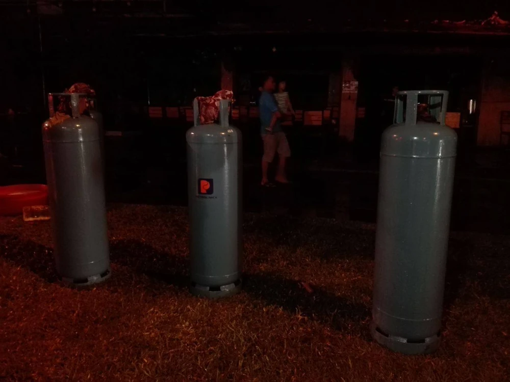 Lực lượng cảnh sát PCCC tiếp tục phun xịt để làm mát khu vực vừa dập lửa, đồng thời đưa khỏi hiện trường 4 bình gas loại lớn để ngăn ngừa nguy cơ nổ do sức nóng từ đám cháy.